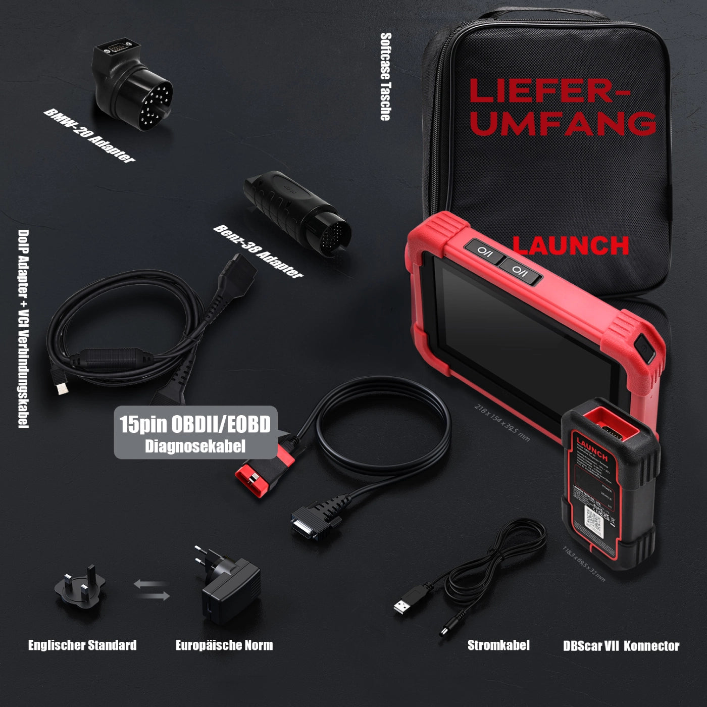 Erweitern Sie Ihre Diagnosemöglichkeiten mit dem optionalen LAUNCH Batterietester BST-360 und dem LAUNCH Videoskop VSP-600/1 für schwer zugängliche Bereiche.